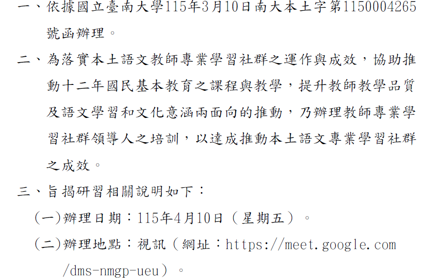 詳細訊息請參閱附件